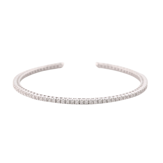 18K White Gold Diamond Patti Tennis Cuff Bangle