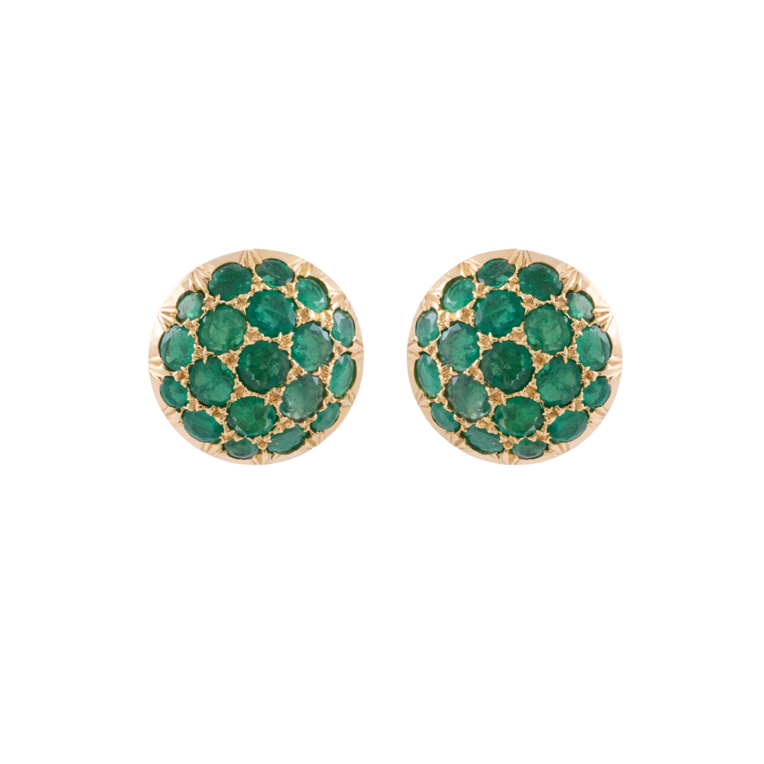 18K Yellow Gold and Diamonds Bezel Front Hoop Earrings