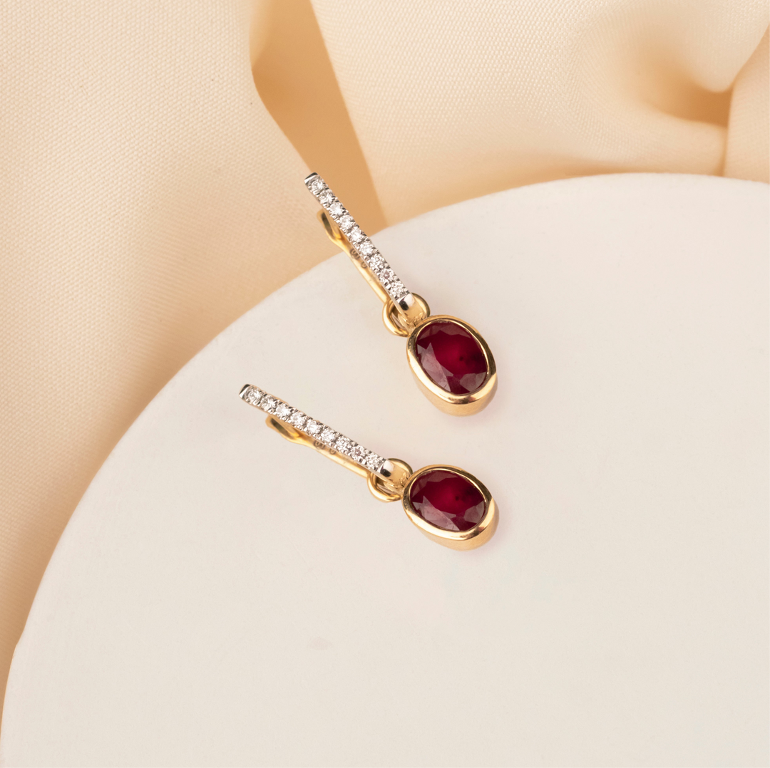 18K Yellow Gold English Lock Diamond Earrings With Oval Rubies
