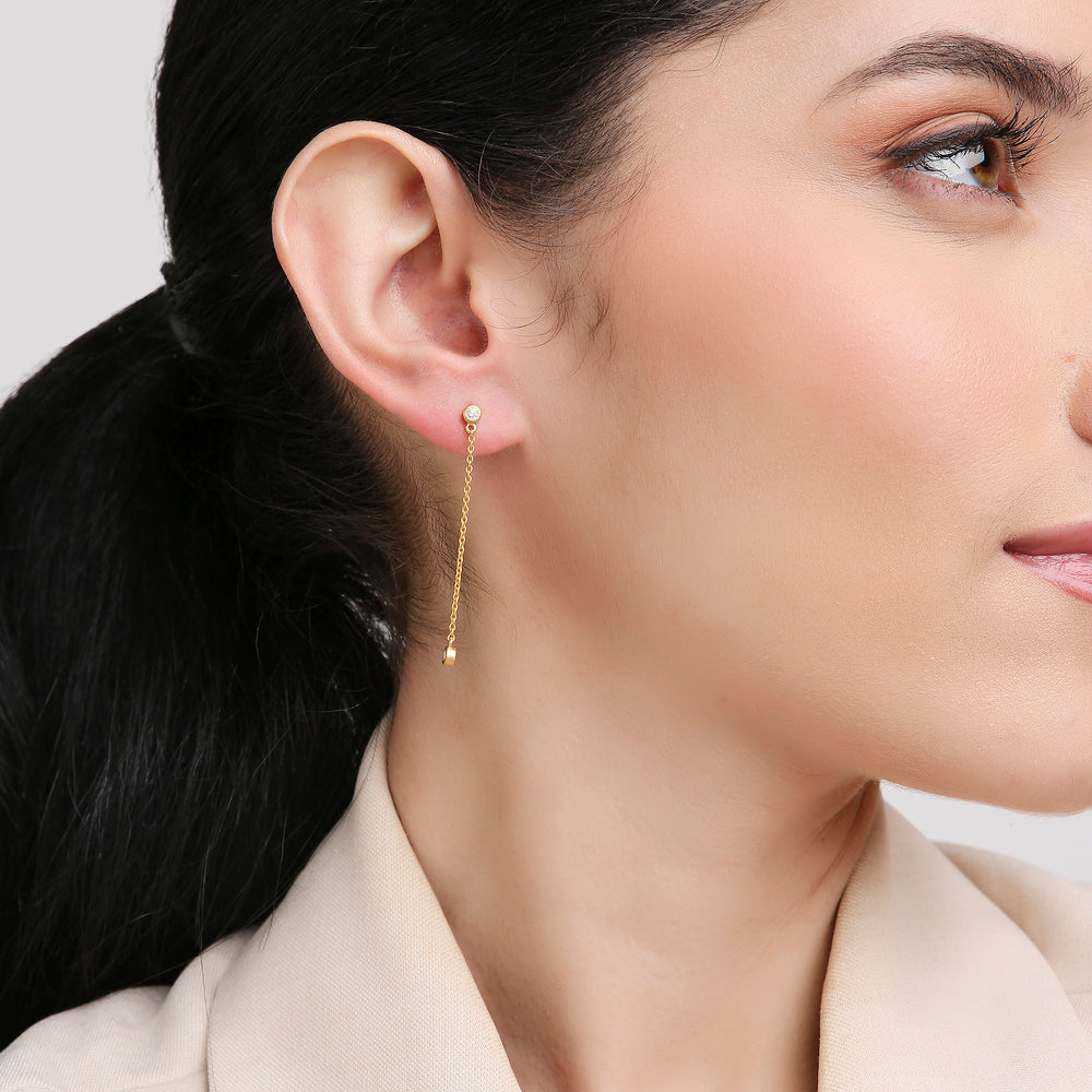 18K Yellow Gold and Diamonds Bezel Chain Short Earrings