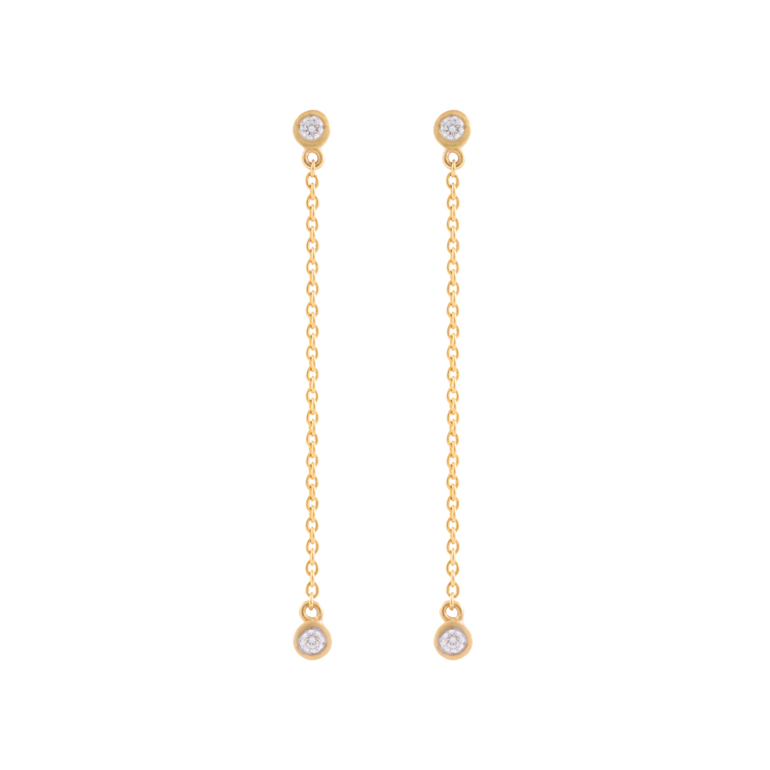18K Yellow Gold and Diamonds Bezel Chain Long Earrings