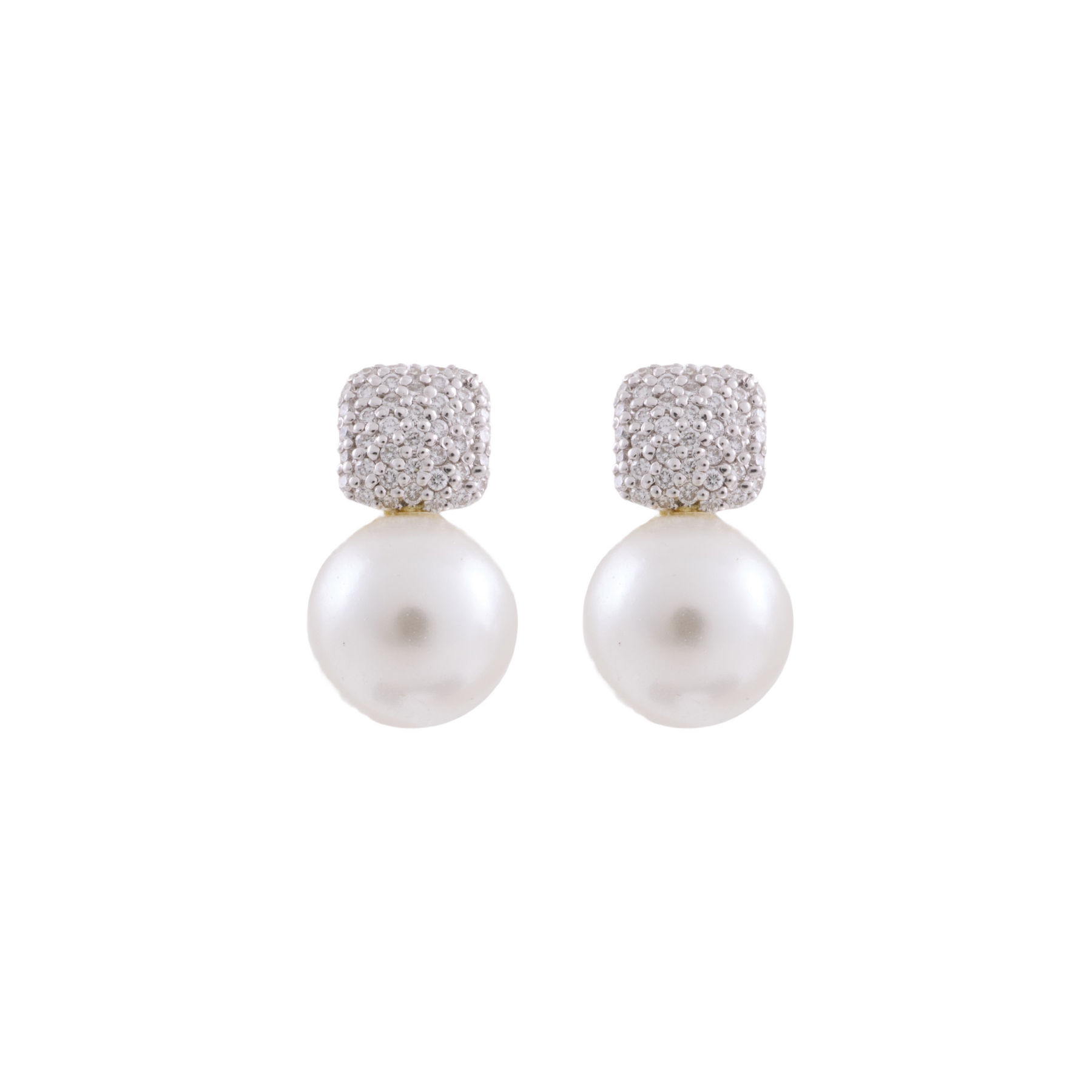 • Cushion Earrings with pearl and diamond in 18K white gold