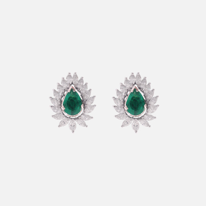 • 18K White Gold Pear Shaped Emerald Earrings with Diamond Jacket