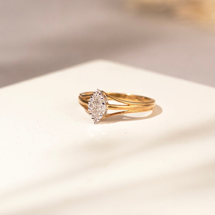 • 18K Gold and Diamonds Vintage Style Cluster Marquise Ring