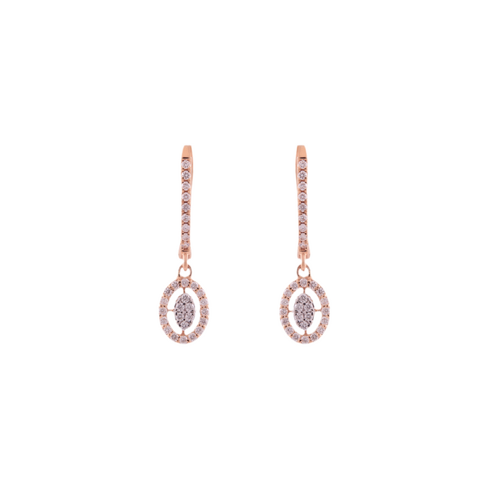 • 18K Gold and Diamonds Vintage Style Cluster Oval Earring