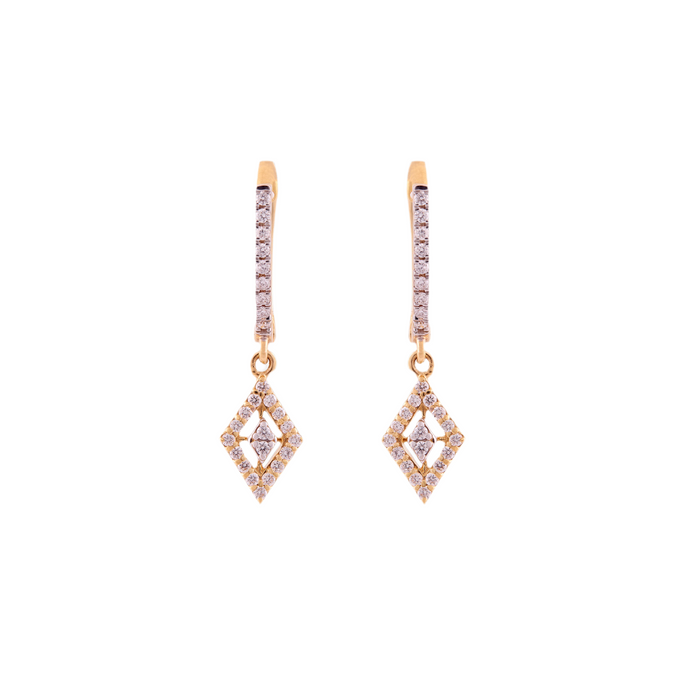 • 18K Gold and Diamonds Vintage Style Cluster Kite Earring