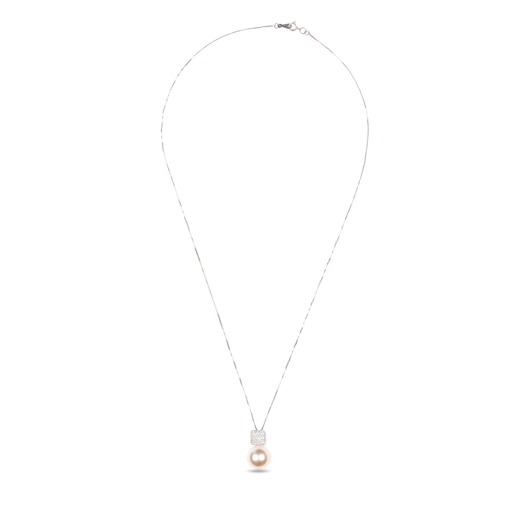 • Cushion dome pendant with pearl and diamond in 18K white gold